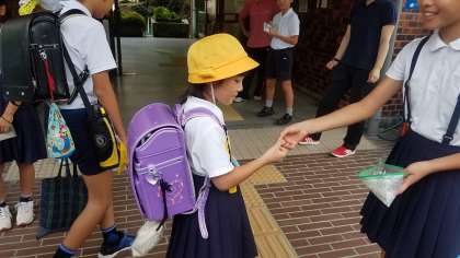 10月3日(月)〜10月7日(金)の5日間、児童会であいさつ運動を実施します。登校時に玄関で元気よくあいさつができたら児童会の役員がシールを配っています。