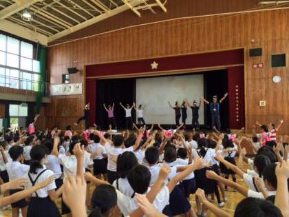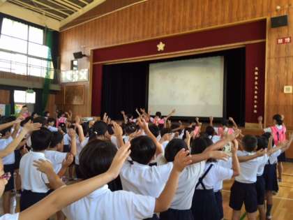 先週のSpecial GuestはMother Goony Birdさんでしたが、なんと今週は7人のChiksたちも登場。児童と一緒に歌って踊って、楽しく英語に親しむことができました。