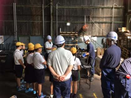 5年生「ネジの旅」で、森鋼材さんを訪問したチームの様子です。