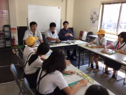 建物の柱と地面をつなぐなど、目に見えない部分で九条のネジが活躍していると知って、児童は誇らしい気持ちになったようです。