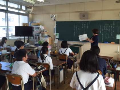 6年生は先日から「平和学習」に取り組んでいます。6年2組では、平和に関連した本を読み聞かせていました。