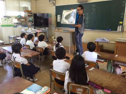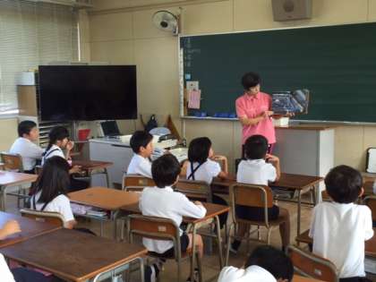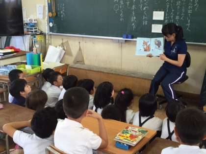 低学年の教室では、6年生の担任が読み聞かせを行っていました。