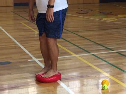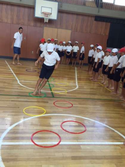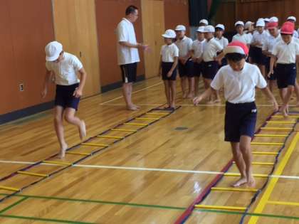上から、体幹トレーニンググッズの紹介、ラダートレーニング、けんステップトレーニングの様子です。