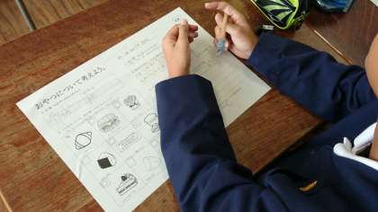 4年生の栄養指導のテーマは「おやつについて考えよう」です。おやつに含まれている油の量を確認し、油を摂りすぎると生活習慣病になることを教えていただきました。「食べ過ぎないようにするために、食べる量を決めたり、食べる時間を決めたりしたいです。」という感想が聞かれました。