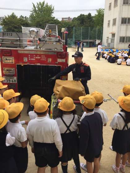 また、避難訓練以外にも防災学習に取り組んでいます。学校の備蓄倉庫を見学したり、避難バックの中身をおうちの人と一緒に考えたりと、学習を深めています。学習を深めるにつれて怖さを感じるとともに、より真剣に訓練に取り組んでいます。