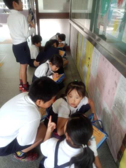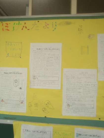 3年生の国語の学習で「ほけんだより」を自分達で作りました。玄関前や廊下の掲示板に貼っています。