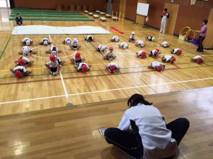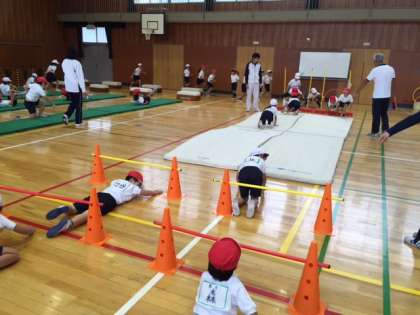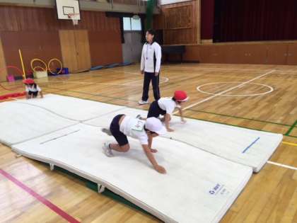 子どもたちからは、「楽しかった。」「知らないうちに前回りができていた。」「もっとやりたい。」等々、前向きな感想がたくさん聞かれました。