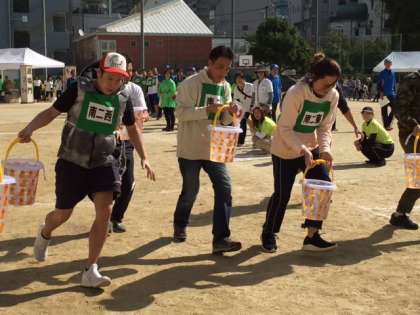 午前の部最後の競技は「町会対抗バケツリレー」でした。水をこぼさないように順位を上げるのは中々難しいようでした。