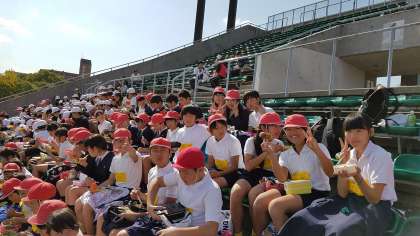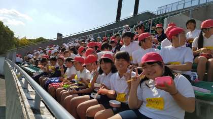 お家の方々の愛情がいっぱい詰まったお弁当を食べて、エネルギーをチャージし、午後からのフィールド競技に挑みます。