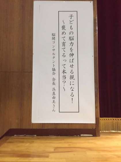 演題 『子どもの能力を伸ばせる親になる! 〜 褒めて育てるって本当? 〜』