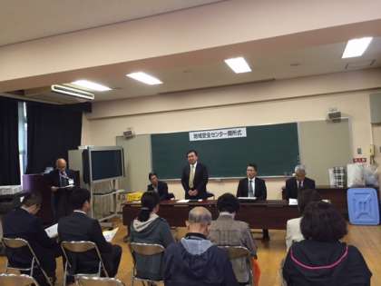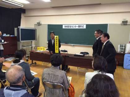 11月14日〈月〉15:00 本校多目的室に於いて、西区役所副区長、西警察副署長、九条南連合振興町会会長を来賓にお迎えし、西区役所主催で「地域安全センター」の開所式が行われました。
