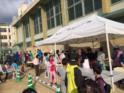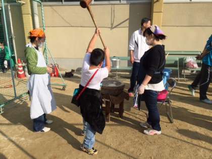 9時の開会と同時にたくさんの児童や保護者が来校し、餅つきを楽しんだり、つきたてのお餅をほお張ったりと、和やかな雰囲気で進行されました。