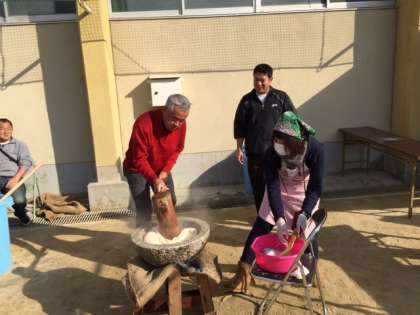 餅つき大会の様子です。大人も子どももみんな最高の笑顔で楽しんでいました。