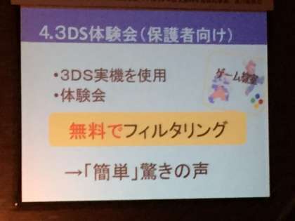 スマホや携帯電話、パソコンはもちろんですが、ゲーム機にもフィルタリングができることを初めて知った参加者が大半でした。