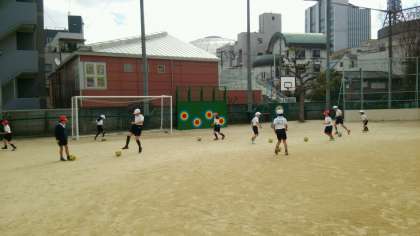 今月は3年生は「四角サッカー」に取り組みます。今日は第1回目なので、教室でルールを聞いたり、四角サッカーが上達するためにどんな練習をしたらよいかを皆で話し合ったりしました。その後、運動場で「まねっこドリブル」「足裏タッチ」などに取り組みました。