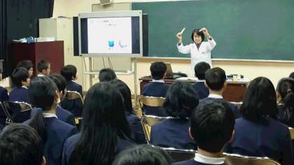 病気やケガを早く治すために役立つ薬。その働きや種類、飲み方など正しい使い方を実験をまじえながらわかりうやすく教えていただきました。先生からの質問にもしっかり答えていた6年生。薬を飲むときの約束をしっかり確認することができました。