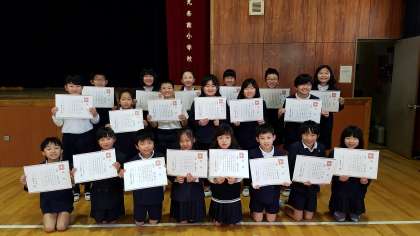 多くの児童の頑張りが認められ、みんな笑顔です。