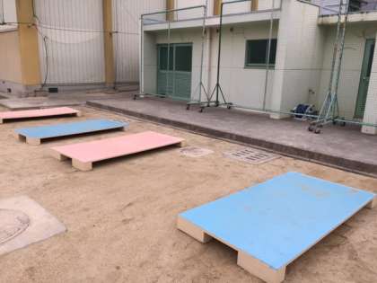 今年度、管理作業員が作成したかわいい色のジャンピングボードを活用し、2重跳び・3重跳びに挑戦する児童も多いです。