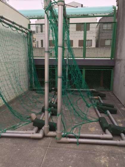 ミニゴールについても危険がないようにと、プレー中にも活用できるウェートを管理作業員が製作しました。