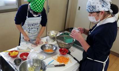 食べてみると、思った以上のおいしさに子どもたちの顔から笑顔がこぼれていました。班ごとにメニューを考えたので、違う班のおかずに興味を持つ場面も・・・