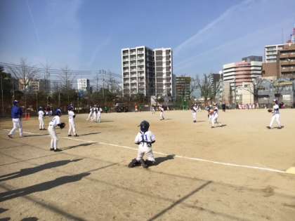 四ツ橋ライオンズクラブ杯「西区少年・少女球技大会」九条南子ども会ソフトボールチームの第一試合の対戦相手はフレンズでした。