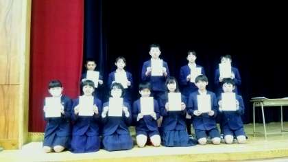 全校朝会で2月に行われた子ども元気アッププロジェクトEKIDEN大会の記録証が授与されました。