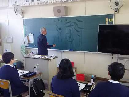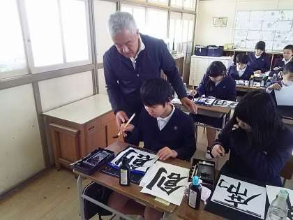 筆の使い方のワンポイントアドバイスや手をとり一緒に書いていただくなど、一生忘れない授業となりました。