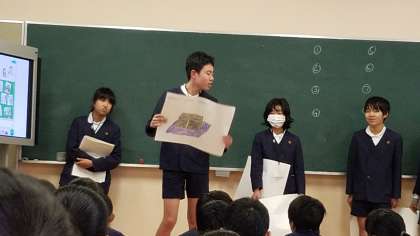 今回のC−NETでは、先週に続いて、それぞれのグループで作ったお話の発表会を行いました。今回発表した5つの班、どれも個性あふれるお話でした。教科書には「ももたろう」が載っていたからか、昔話を参考にしたお話が多かったです。「うらしまたろう」「おおきなかぶ」子どもたち力作のお話。もちろん、ストーリーは英語で頑張って発表しました。
