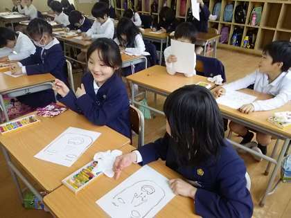 ゲストティーチャーに小幡教頭先生に来ていただき、似顔絵を描きました。