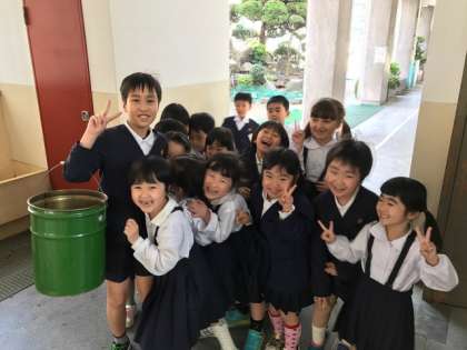 今日は、教室掃除の仕方を学びました。掃除のときは、6年生のお兄さんやお姉さんが一緒に、机運びをしました。また、ほうきでのごみのはき方教えてもらいました。最後には、教室のごみ箱にたまったごみの捨て方を、一緒に行って見て学習しました。