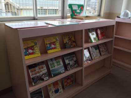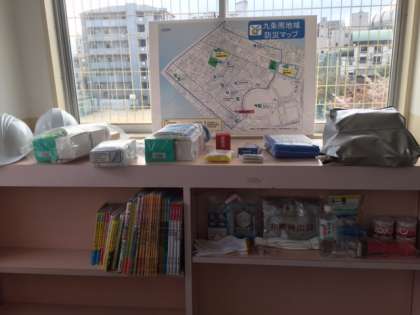 図書室の書物や非常持ち出し袋など、現在学校にあるものを展示しています。
