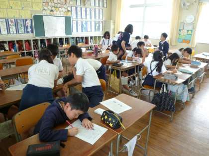 運動会まであと2週間となりました。今日の6時間目に、1回目の運動会の打ち合わせを行いました。各委員会ごとに割り当てられた係で、役割分担をしたり、仕事の内容を確認したりしました。運動会に向けて、着々と準備が進められています。