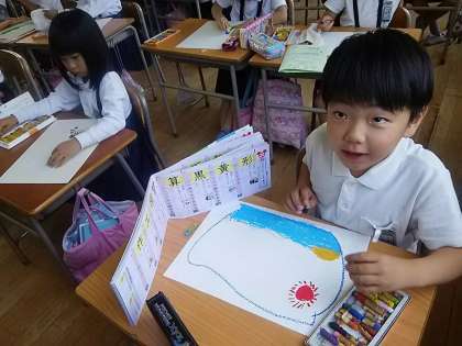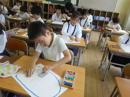 2年生の図画工作科では、「ひみつのたまご」を描き始めました。