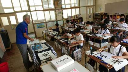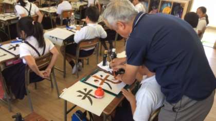 4年生では、校長先生の熱血指導のもと、習字の学習を行いました。始筆、終筆、はねの書き方のコツを教えていただき、「光」の字を半紙いっぱいに大きく書きました。最初は、自信なさそうに筆を運んでいた子も、最後には堂々とした立派な字を書いていました。今後も校長先生に習字を教えていただく予定です。楽しみにしておいてください!