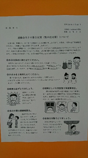 当日の暑さ対策(熱中症対策)について、本日手紙を配布しています。