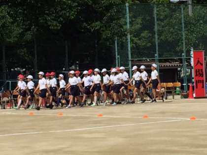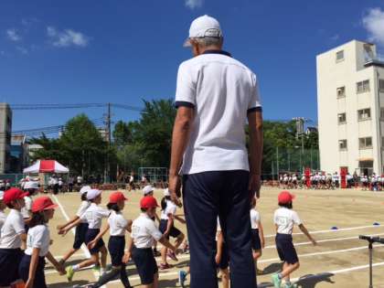 午前9時、ファンファーレの音も高らかに九条南小学校の運動会が開幕しました。全校児童の元気いっぱいの行進でスタートしましたが、どの学年もがんばるぞ!!という気合いが感じられました。