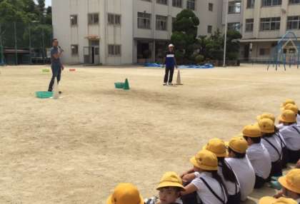 「大人の方の遠投やキャッチボールを模範演技として見せていただいたことで、目標を持ち、がんばれました。」と感想を話す児童も多かったです。