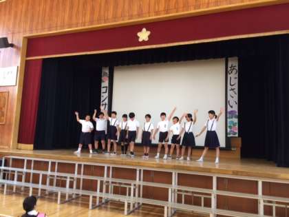 児童会の児童による今年のキッズカーニバルのめあてがまず発表されました。今年のめあては、「協力して絆の輪を広げよう」になりました。