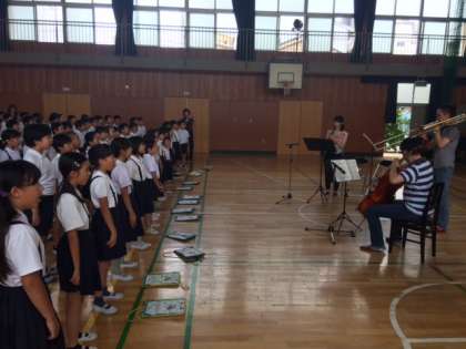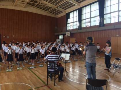6月22日(木) 中部フィルハーモニー交響楽団の方々に来ていただき、9月21日に実施する音楽鑑賞会に向けてのワークショップを行いました。