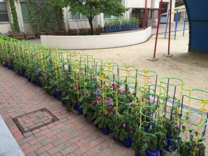 地域の教育支援ボランティアの皆さんのご指導のもと植えたこともあり、1年生45名全員の植木鉢に鮮やかな大輪の花が見事に咲きました。