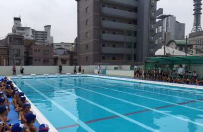 7月6日(木)は昨日までの雨が嘘の様に青空が広がり、絶好の水泳日和となりました。保護者の皆様もたくさん来校していただき、子どもたちは、いつも以上に意欲的に練習に励んでいました。