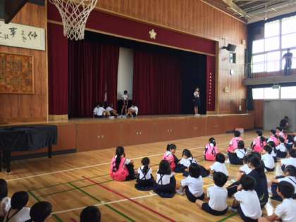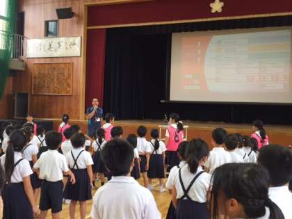 今日は児童集会があり、全学年でイングリッシュタイムを行いました。
