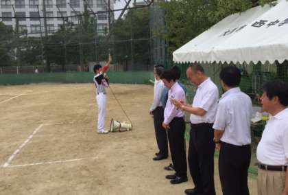 前年度優勝校、九条南小学校PTAソフトボールチームキャプテンの村上さんの力強い選手宣誓で、大会が開会されました。