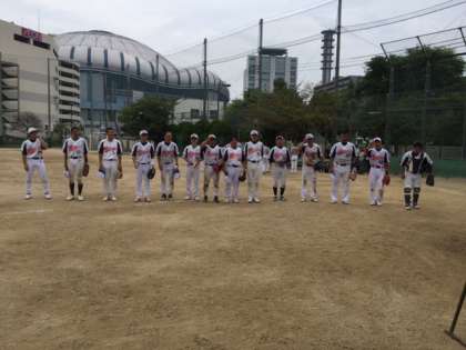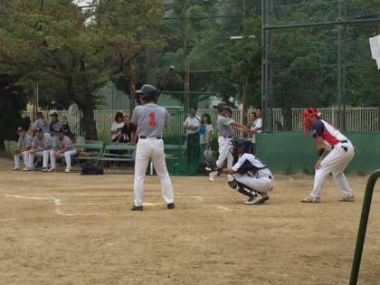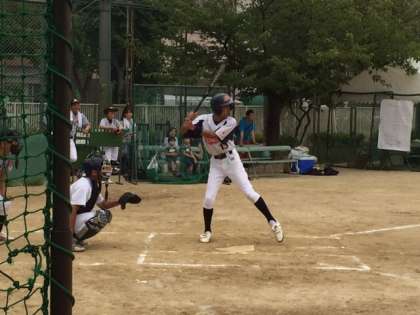 蒸し暑い中でも、九条南小学校PTAソフトボールチームの選手の皆さんは元気です。2回戦もパワー炸裂。ホームランあり、長打のヒットあり、スライディングありで大勝でした。