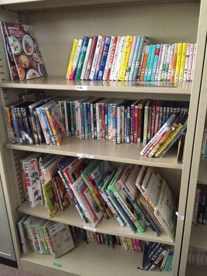 先月貸し出していた書籍やDVDも戻ってきます。本棚が空になることを期待してPTA図書委員の皆様が、会議室を開放して待っています。