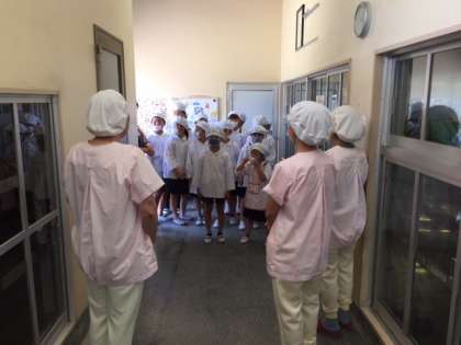 子どもたちから調理員に感謝の言葉が届けられました。調理員の表情も子どもたちの表情も笑顔いっぱい。「ありがとう」の言葉は魔法の言葉ですね。