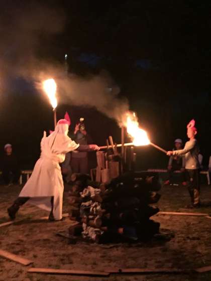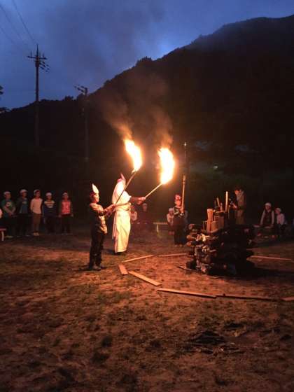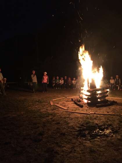 7月26日(水)19時 心配した天気もどんどん回復し、夜には予定通りキャンプファイヤーを行いました。