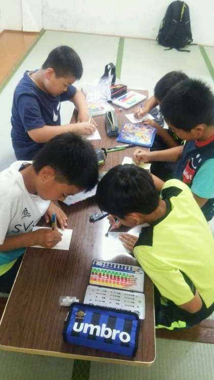 真剣な顔で黙々と手を動かす子どもたち。時折、笑顔で何かを思い浮かべては、考え込んでいます。そして、最高の笑顔になったかと思うとまた一所懸命に何かをしたためています。