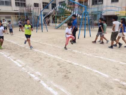 前傾姿勢で加速することやピッチ走法からストライドを広げるなど、1週間後の8月3日(木)の大阪市スポーツ交流会(陸上の部)まで、根気強く練習を続けましょう。