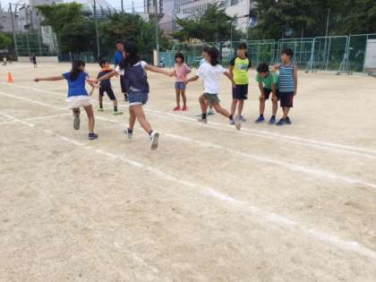 腿揚げや腕の振り方も自分で意識できる子どもたちが増え、走るフォームができてきました。